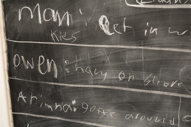 It definitely gets plenty of use. It's in the hallway where the kids bedrooms are so they often write messages on it. Ariana wrote the above message. It originally said we were going to the beach and she wrote what everyone should do when we get there. Beside Owen's name she wrote: "hang on shore" ...I die.